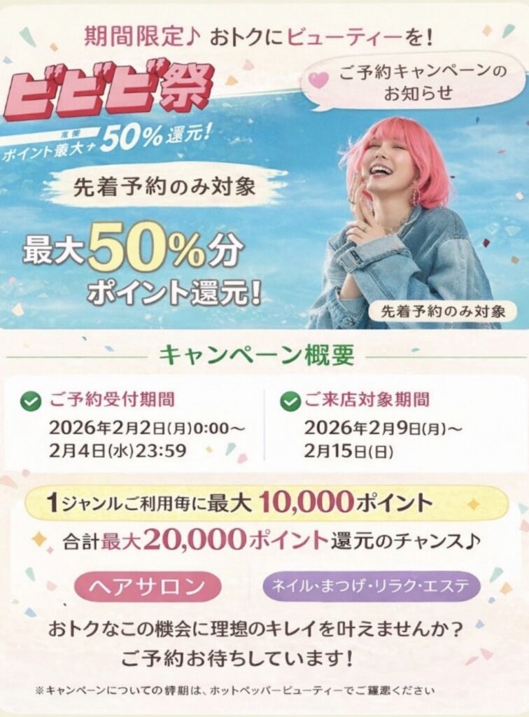 ホットペッパーで2/2から2/4までビビビ祭があります。